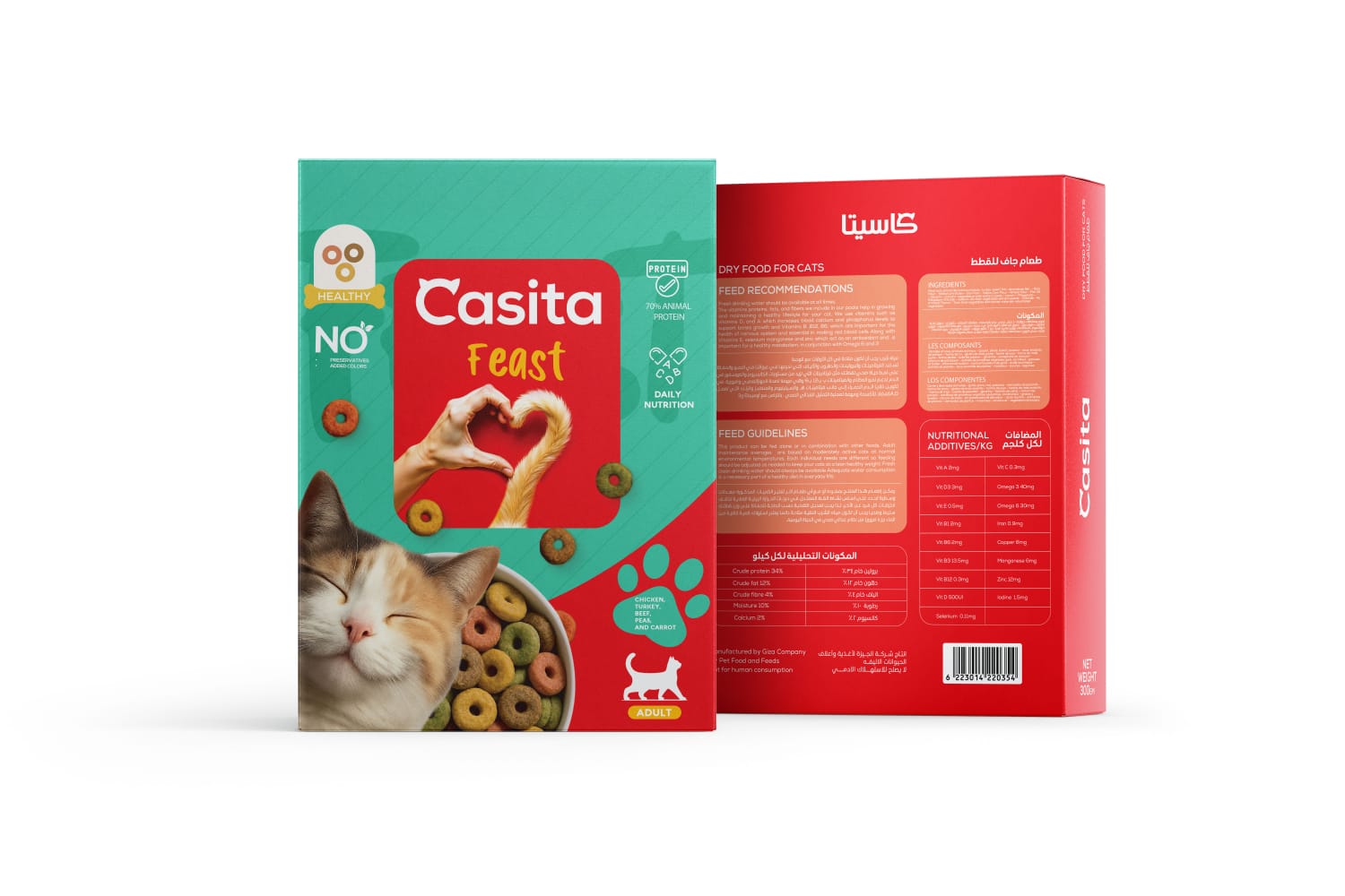 Casita Feast is a delicious medley of flavors including Chicken, Turkey, Beef, Peas, and Carrots. This nutrient-dense formula provides a gourmet experience for adult cats while maintaining a balanced diet. Packed with Omega 3 and 6 fatty acids, it promotes a shiny coat and healthy skin.